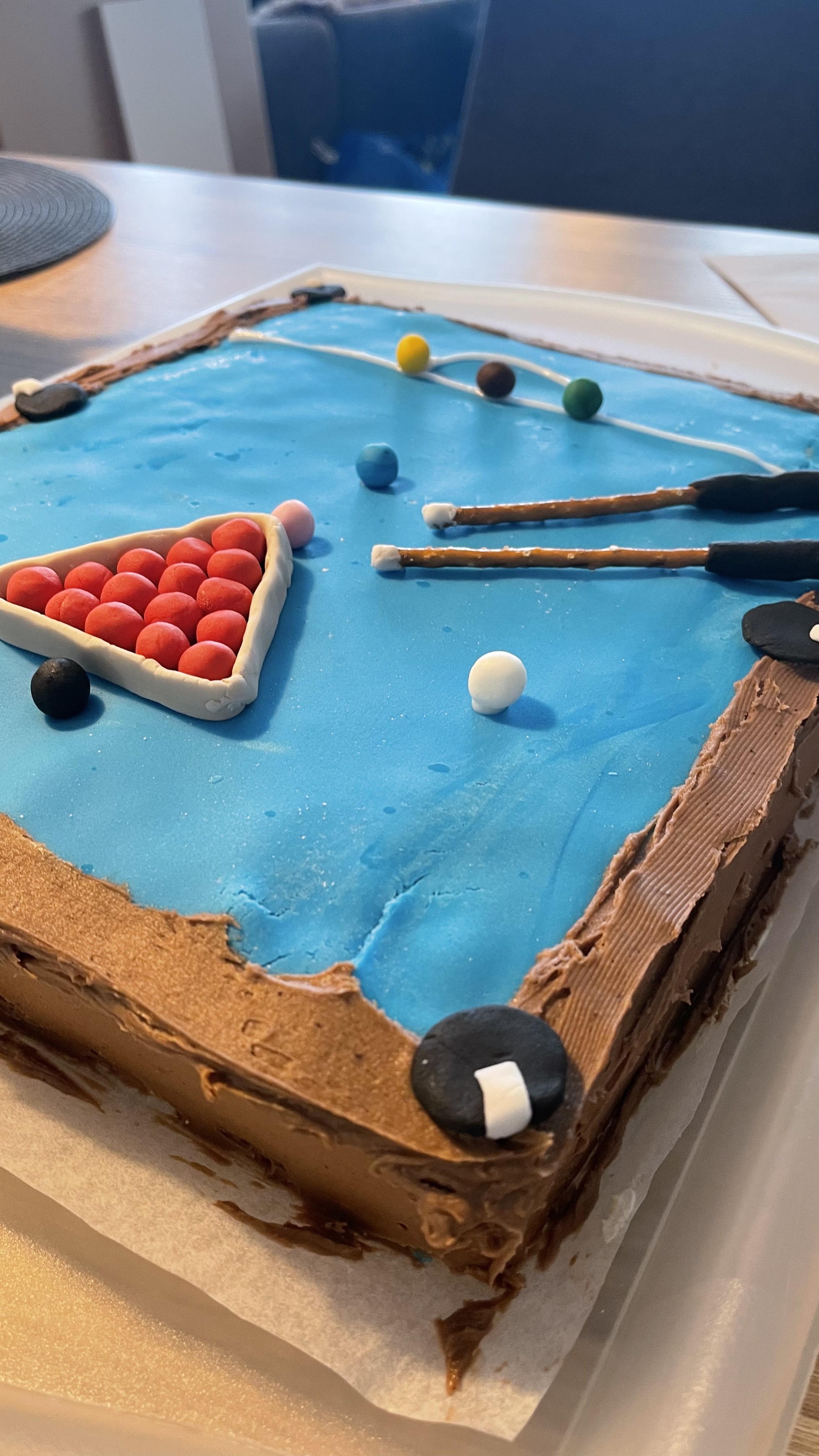 今回はテーマケーキを作ってみることにしました。彼はスヌーカーが趣味なので、フォンダンシュガーを使ってケーキケーキを作ることにしました。使い方や仕上がりがどうなるのか分からず不安でした。